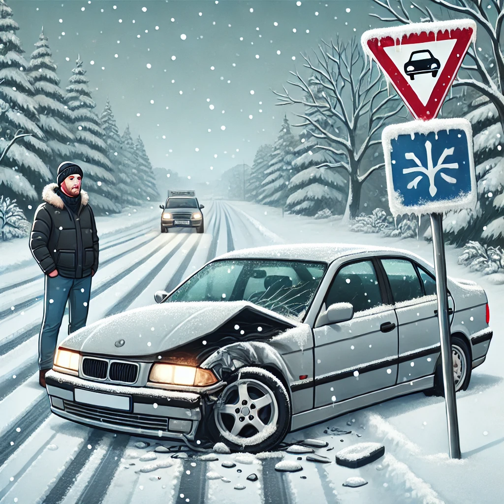 - 사고 내용: 한 운전자가 눈길에서 차량 제어를 잃고 도로 표지판을 파손.
