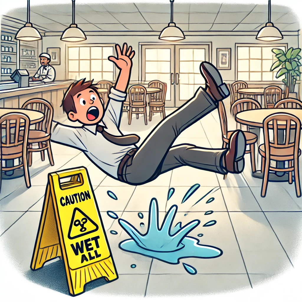 • 사례: 물이나 음식물이 바닥에 흘러 있거나, 매트가 미끄러워 발이 미끄러지는 경우.